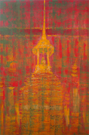 Dans ce temple débordant de richesse Je prie et remercie pour tant de misère Au fond de mon être Je souhaite mourir et ne plus revenir Toile acrylique 120/80